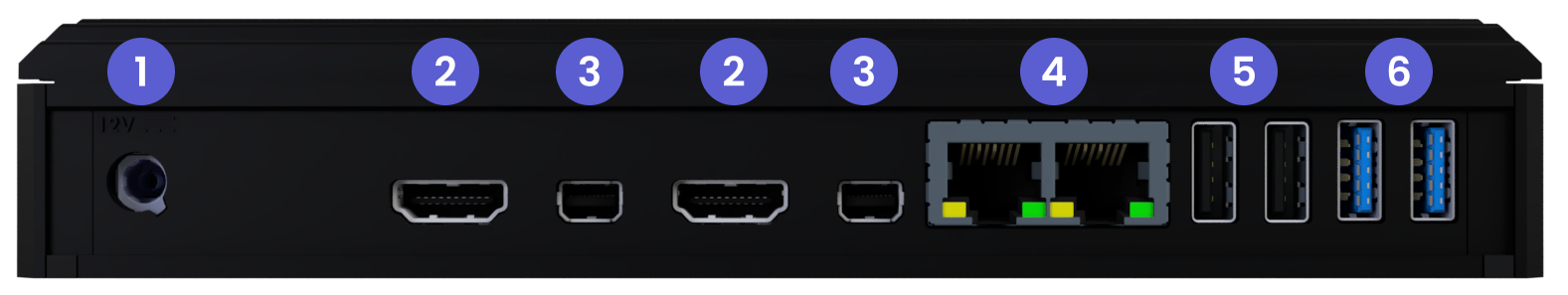 These two Mini-DisplayPort 1.2 connectors support a resolution and refresh rate of up to 2160p60.