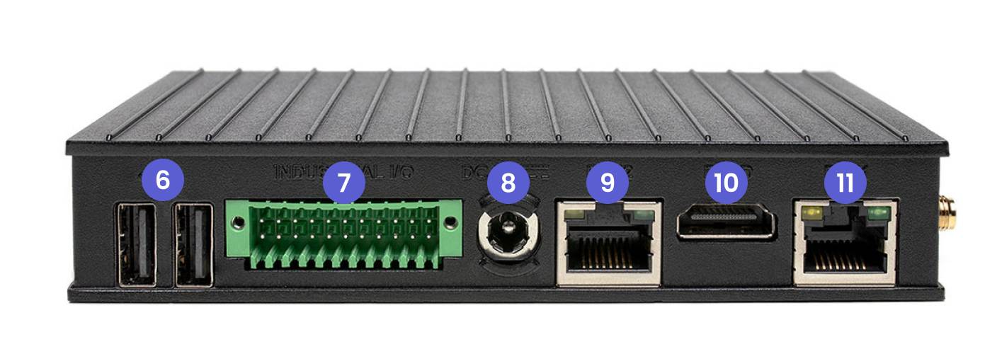 Based on the configuration of your gateway, you may have access to one or more galvanically isolated industrial I/O ports (RS-232, RS-485, CAN, and digital GPIO) over this terminal block. For more information on interacting with this port and the configuration of your device, please refer to the Industrial I/O (Example of a subsection within Industrial I/O) section.
