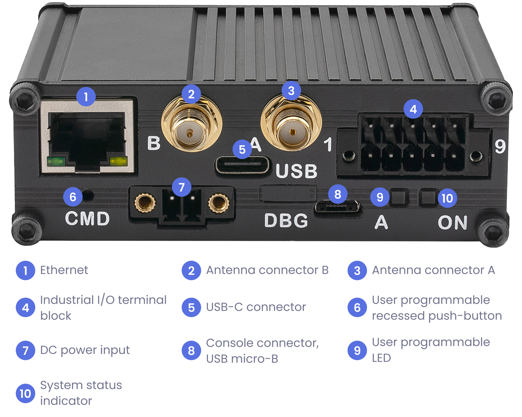 Your gateway comes pre-installed with the latest Debian Linux operating system image. To get started, you will need: